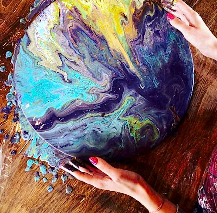 Pin Up “Флюид-арт” с шампанским (холст 20*30 или круг диаметром 20 с